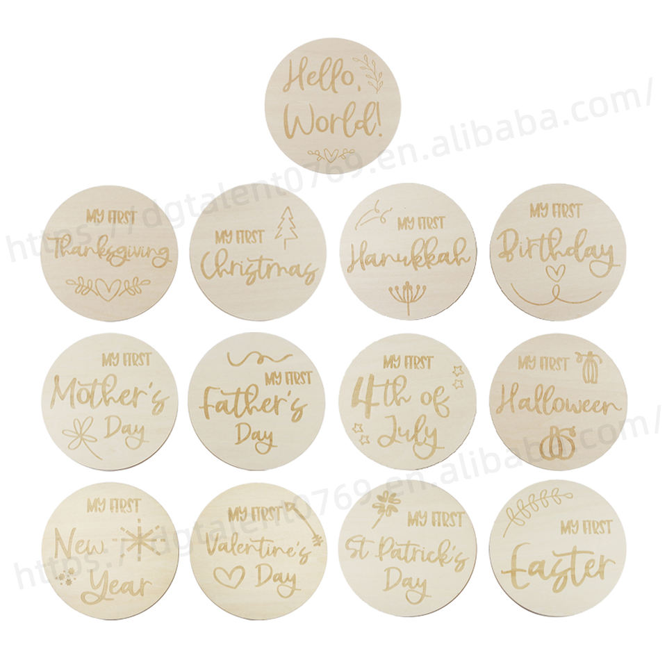 Baby Monthly Milestone Cards Wooden Baby Shower Sign Newborn Gift Sets Wooden Milestone Discs Baby Photography Props