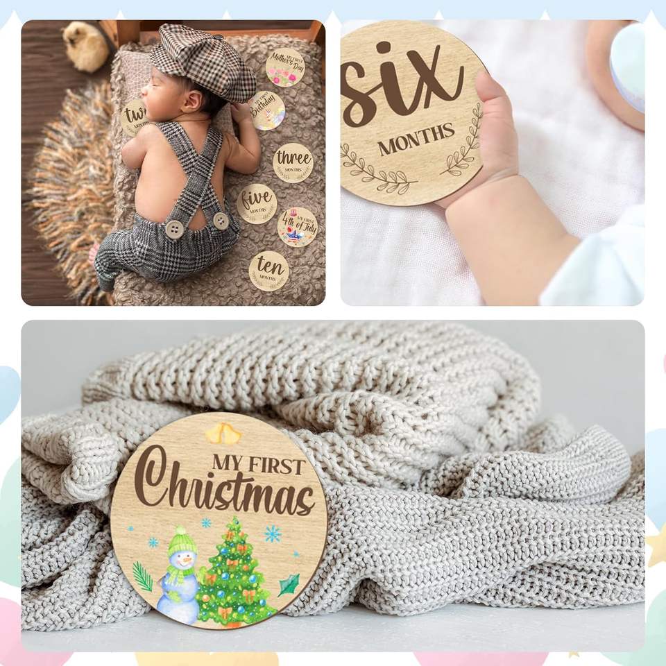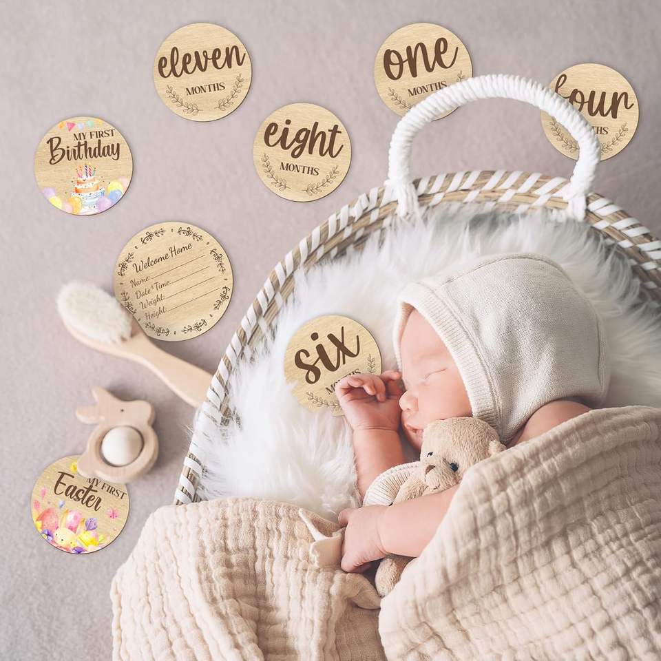 Carte Fotografiche Mensili in Legno Incise per Neonati, Accessori per Foto di Tappe Importanti del Bambino, Doppia Faccia, per Annuncio Nascita