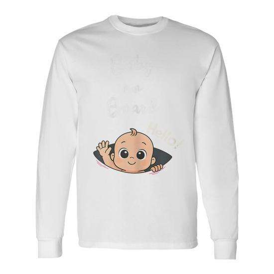 T-shirt a maniche lunghe unisex per adulti con stampa digitale e design 'Pregnancy Announcement Peeking Baby'