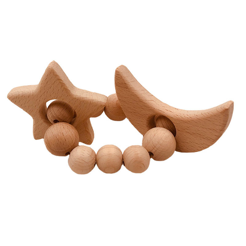 Baby Organic Beech Wood Teether/Wooden Food Grade Beech Animal Molar Pacifier Chain Natural Teething Chain Wooden Molar Rattle