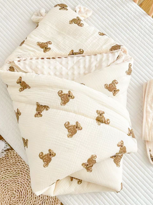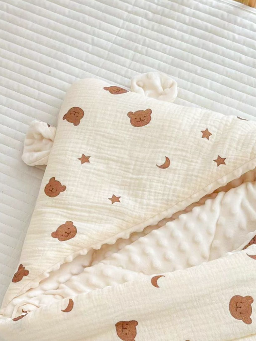 Baby Quilt Newborn Gauze Bean Velvet Holding Autumn and Winter Cotton Thickened Bear Delivery Room Holding Blanket Wholes