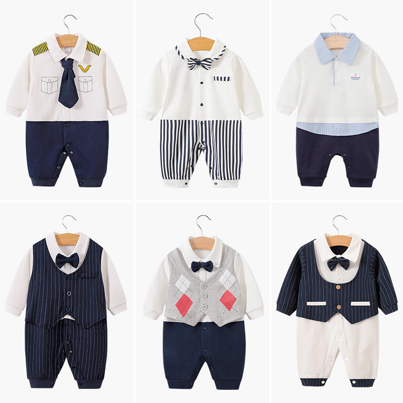 Baby Romper Boys First Birthday Outfit Spring Autumn Class Cotton Newborn Gentleman Clothes British Stylish Children's Clothing