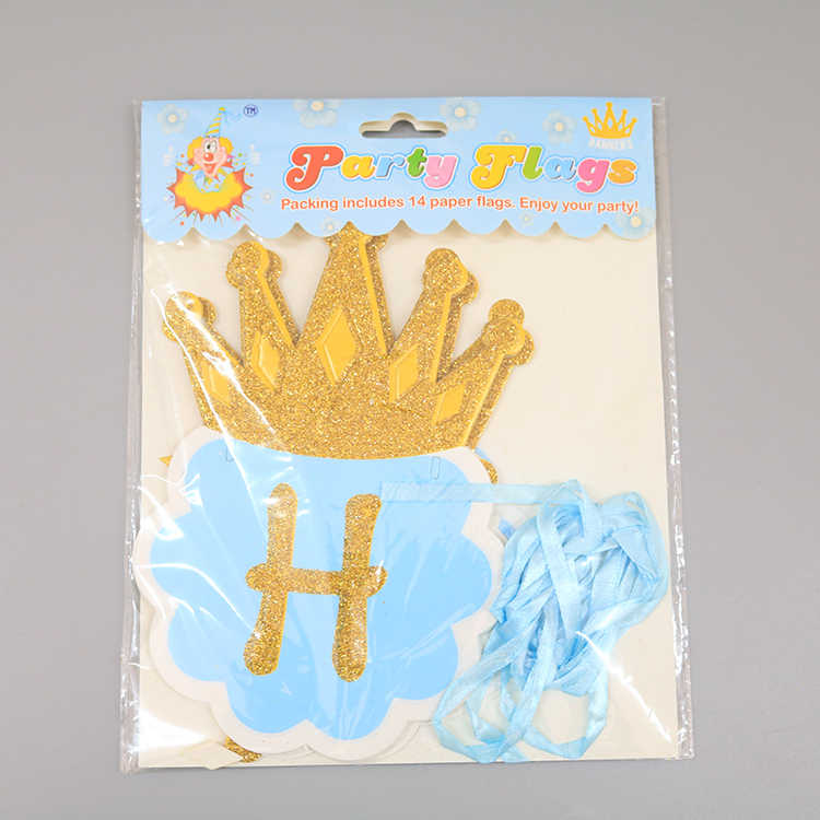 Baby Shower Kids Birthday Decoration Supplies Blue Pink Happy Birthday Letter Banner Crown Paper Banner