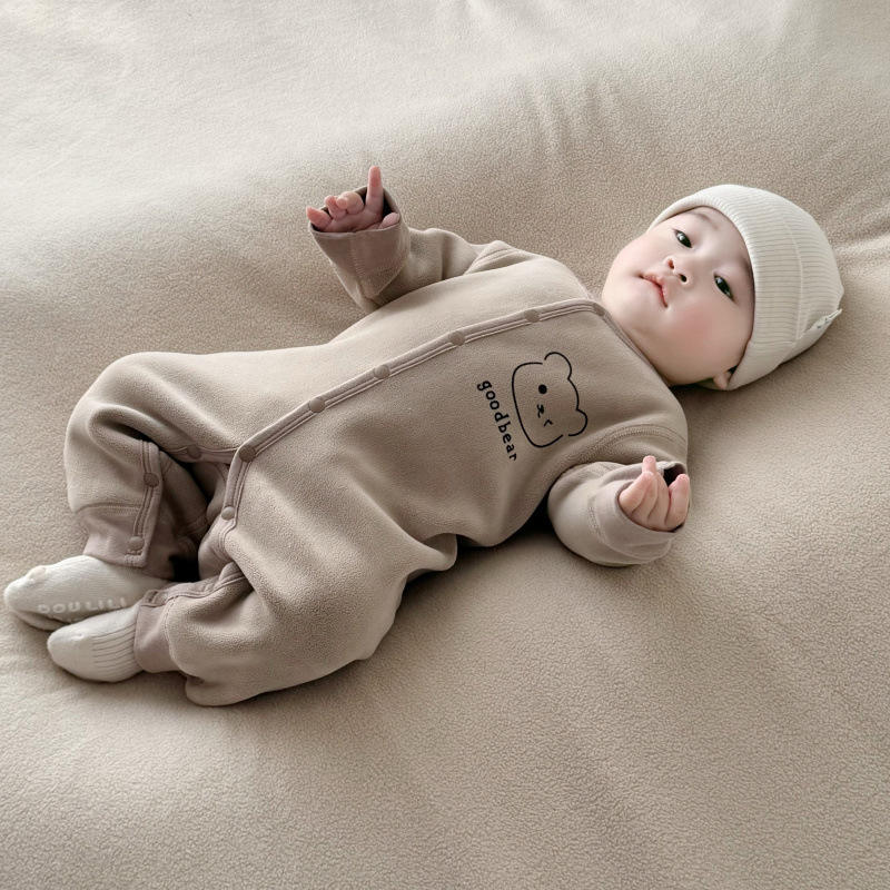 Baby Warm One-piece Suit With Fleece For Spring, Autumn And Winter, Boys Girls, Going Out, Baby Indoor Crawling