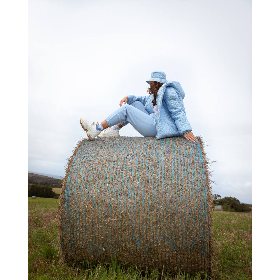 Baby blue quilted bucket hat handmade in UK Limited Edition