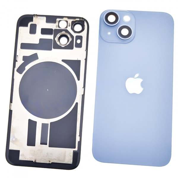Cover Posteriore con Supporto in Metallo e Lente per iPhone 14 Blu