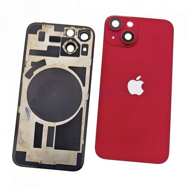 Cover Posteriore con Supporto in Metallo e Lente per iPhone 14 Rosso