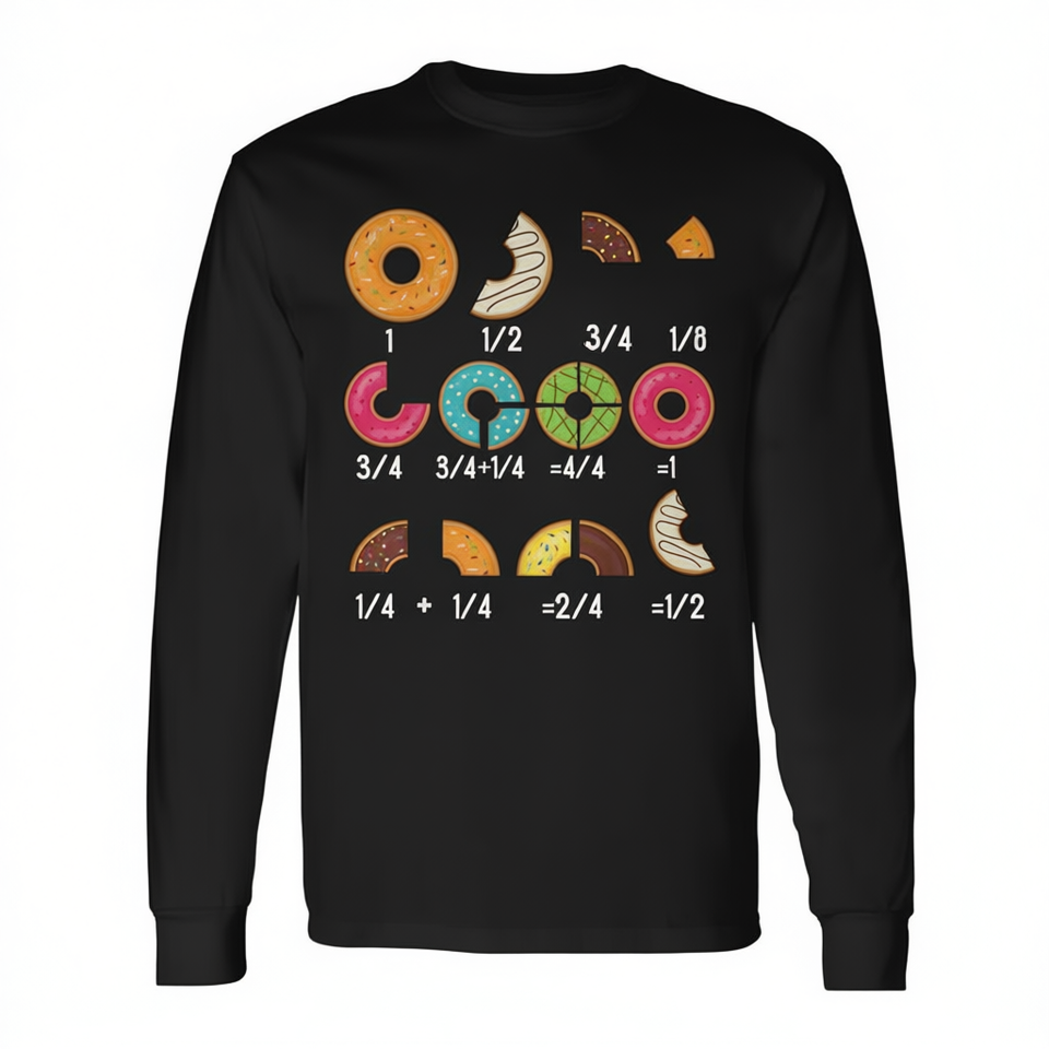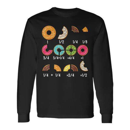 Maglietta a Maniche Lunghe per Insegnanti con Motivo Matematico 'Donut Fraction', Maglietta Promozionale Educativa per il Ritorno a Scuola