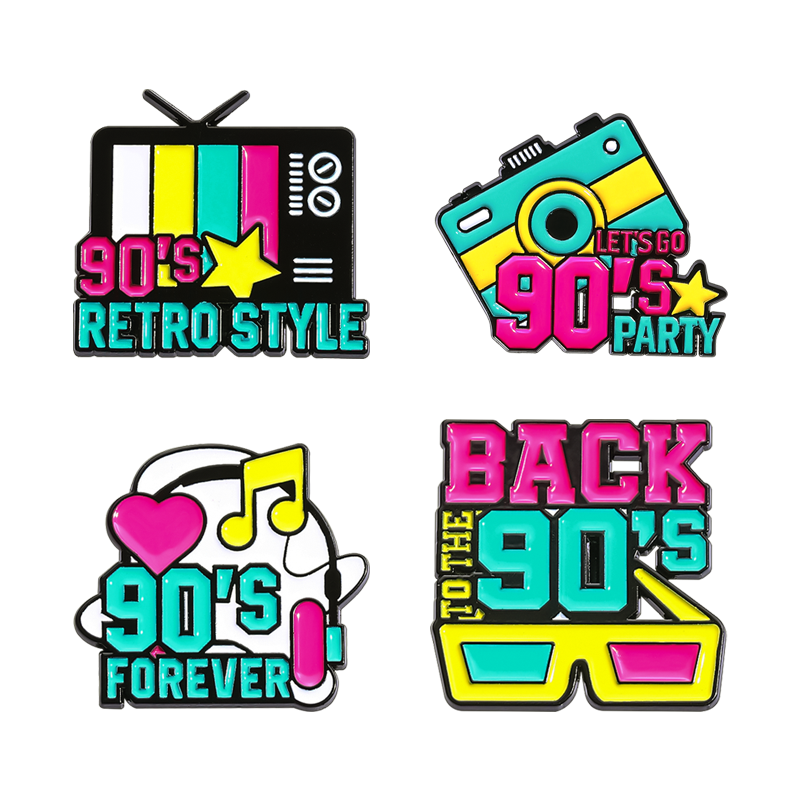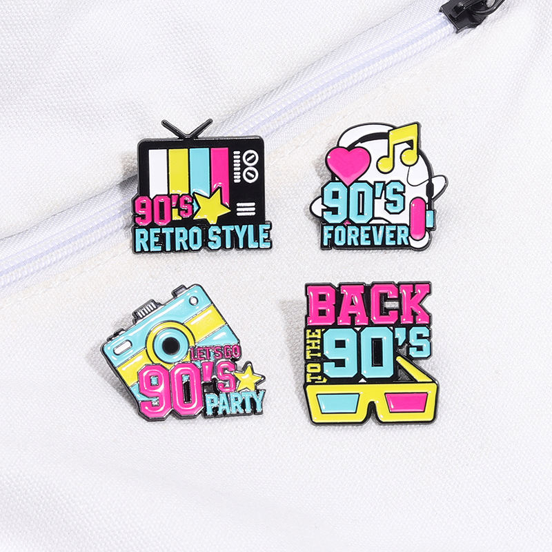 Back to the 90s Enamel Pins Custom Let Is Go 90 Is Party Nostalgia Brooches Clothes Lapel Badges Retro Jewelry Gift for Friends