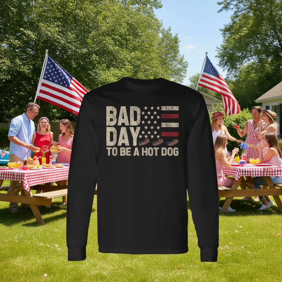 Buon giorno per essere un hot dog, maglietta a maniche lunghe con bandiera degli Stati Uniti, 4 luglio