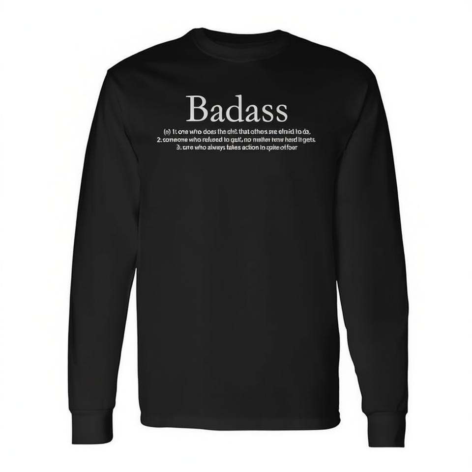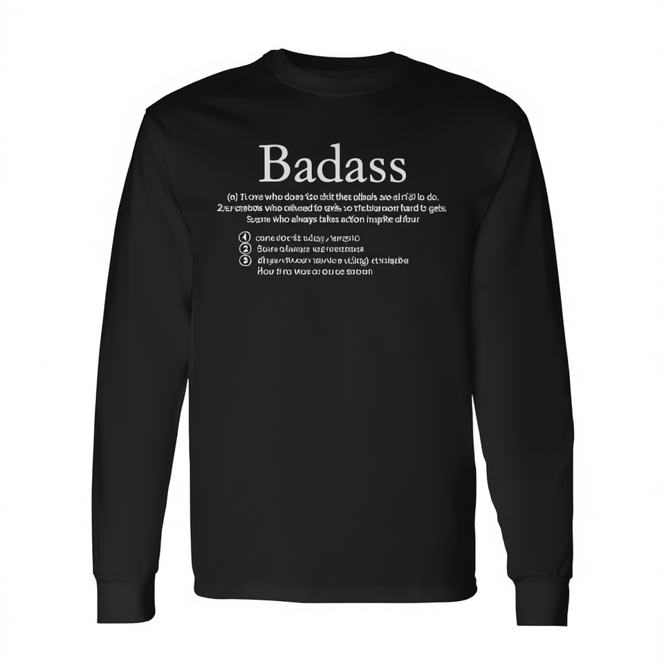 T-Shirt a Maniche Lunghe con Stampa Digitale 'Badass Definition' Unisex Nero per Adulti