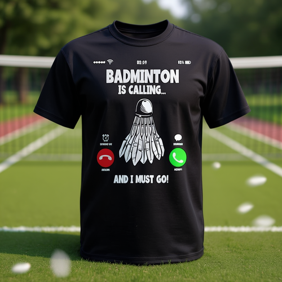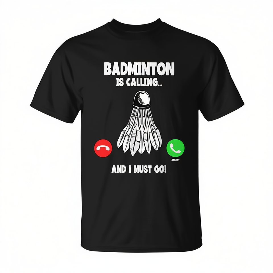 T-Shirt Badminton Shuttlecock Must Go, Abbigliamento Promozionale con Design Accattivante, Stampa Digitale, Manica Corta, Unisex