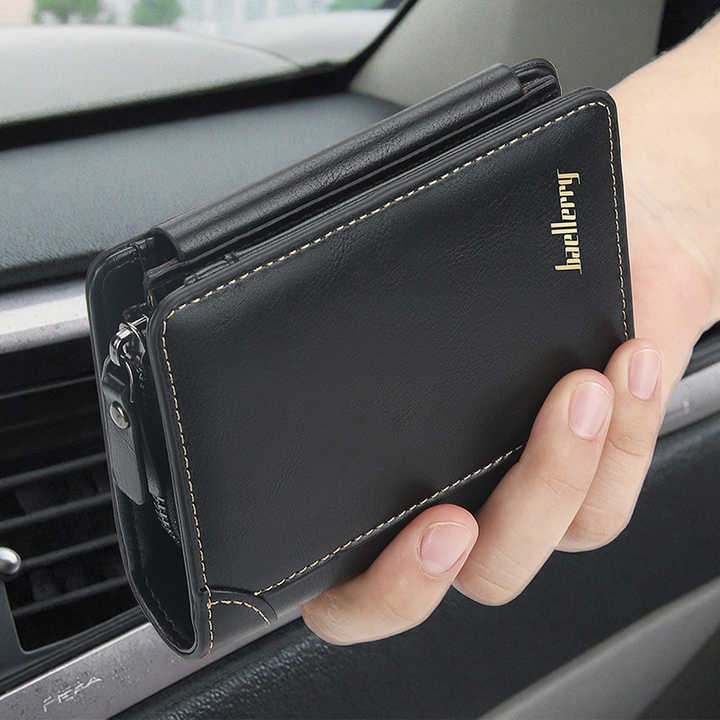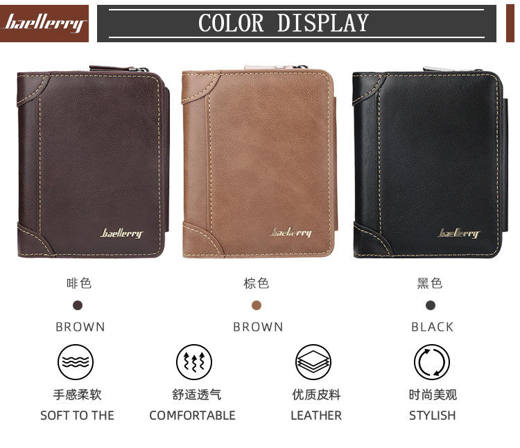 Baellerry portafoglio antifurto uomo 3-Fold PU in pelle con RFID borsa corta per gli uomini 15 carte di capacità alla moda