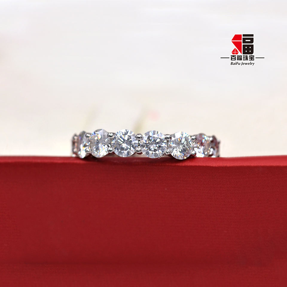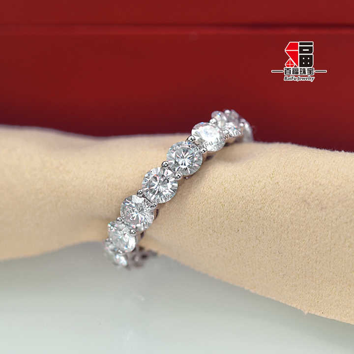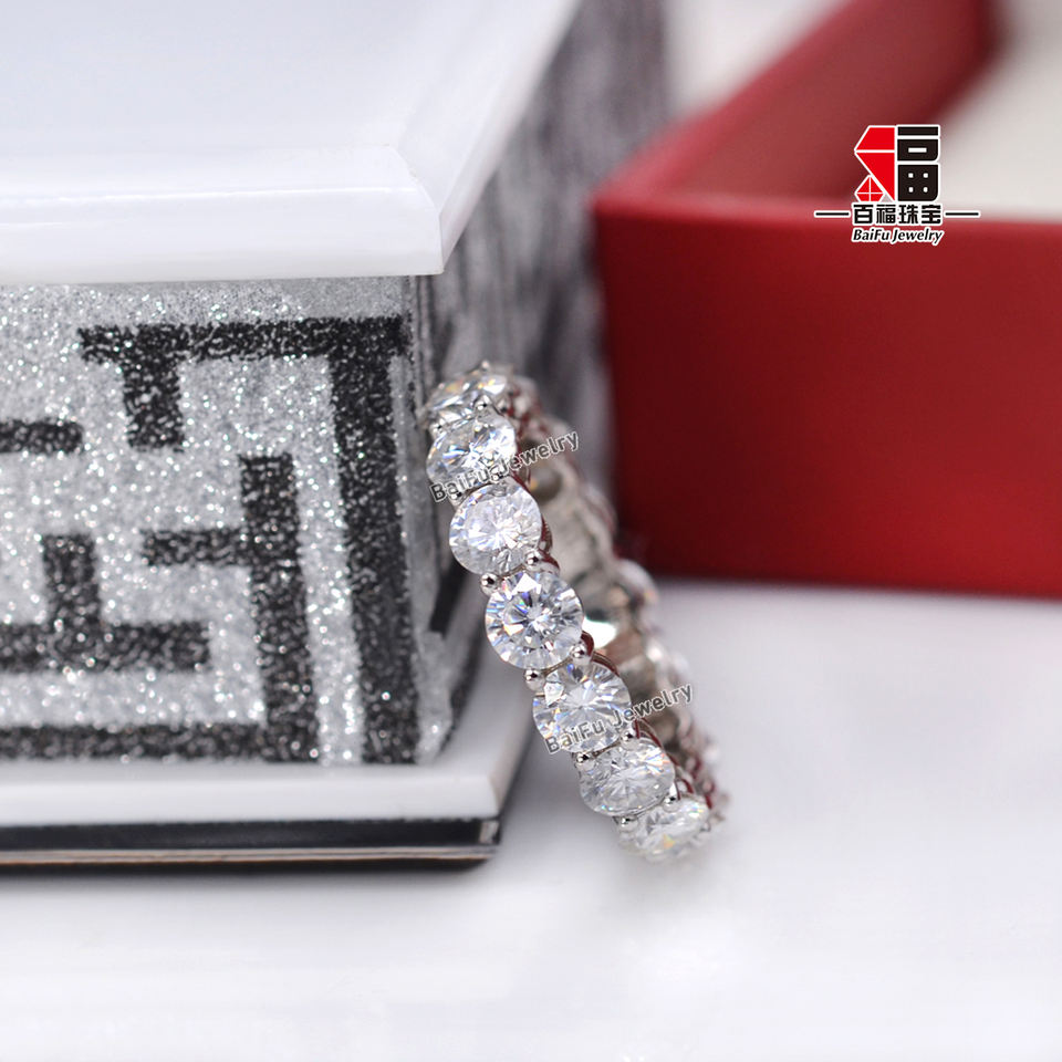 Anello Eternity Baifu Jewelry Classico a Cerchio Completo in Oro 14K con 4 Griffe e Moissanite da 4.0mm