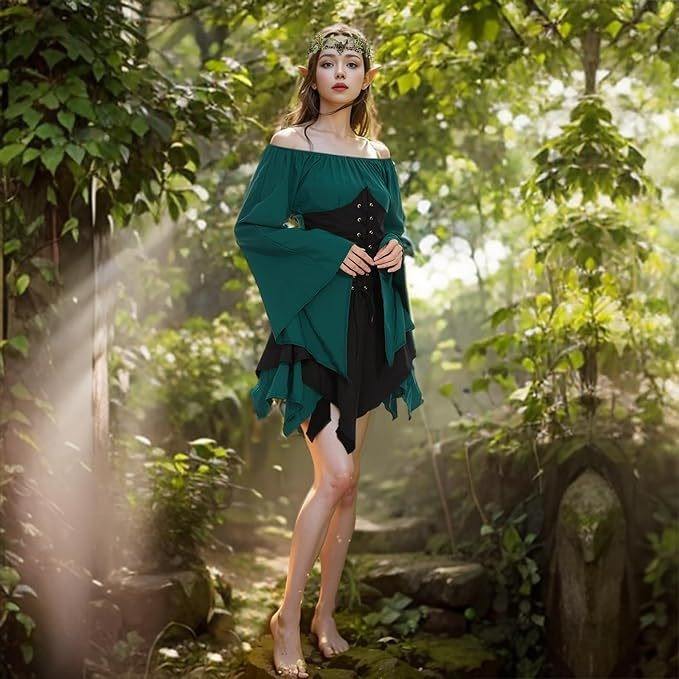 Baige 2024 Costume da fata medievale vestito da donna rinascimentale Halloween Elf ragazze Cosplay accessori