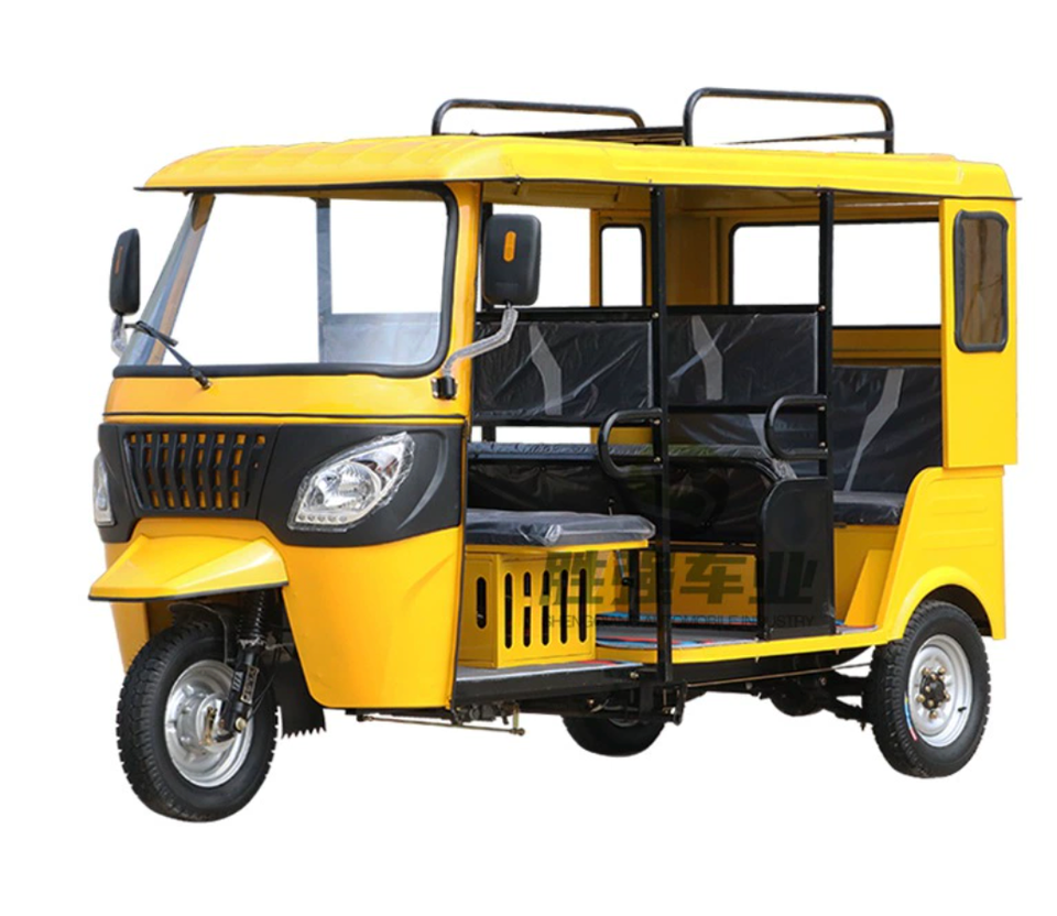 Tuktuk a Gas Chiuso Motorizzato Bajaj con Nove Posti in Tre File per Tour Guidati in Città e Trasporto di Gruppi di Passeggeri