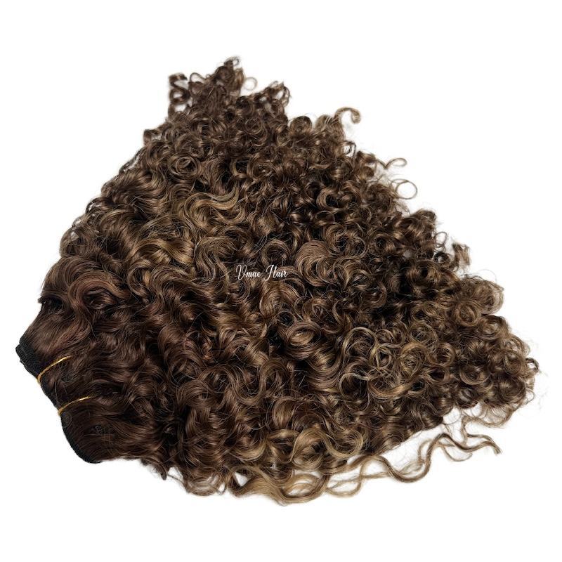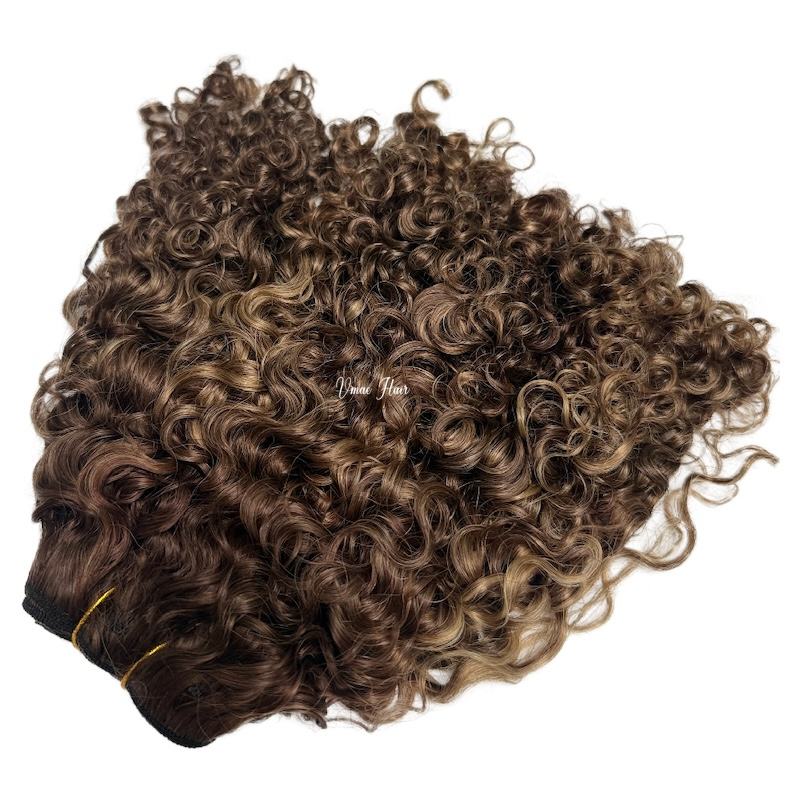 Estensioni per capelli umani ricci profondi castano Balayage, a doppia trama, con cuticole allineate, capelli Remy cambogiani castano scuro, ricci afro.