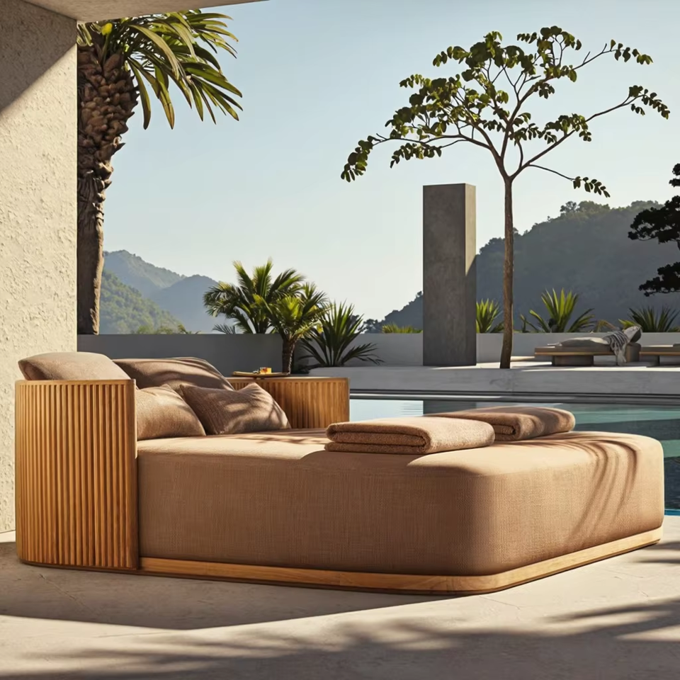 Bali Outdoor Garden Teak Wood Sunbed and Beach Chair With Canopy for Pool Hotel or Villa