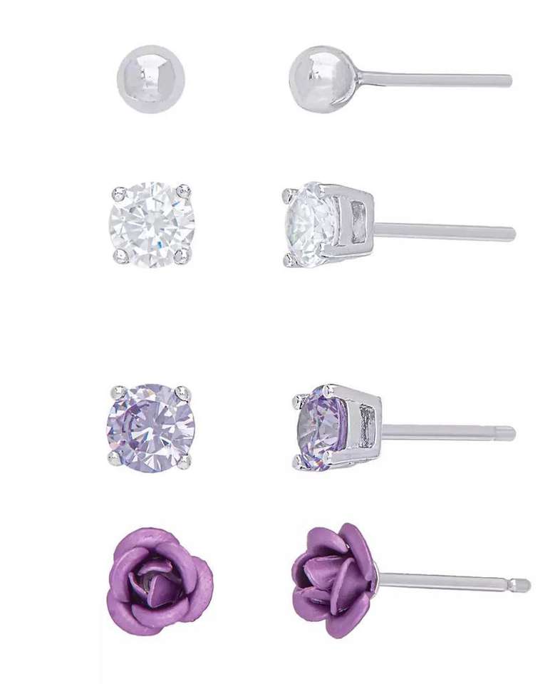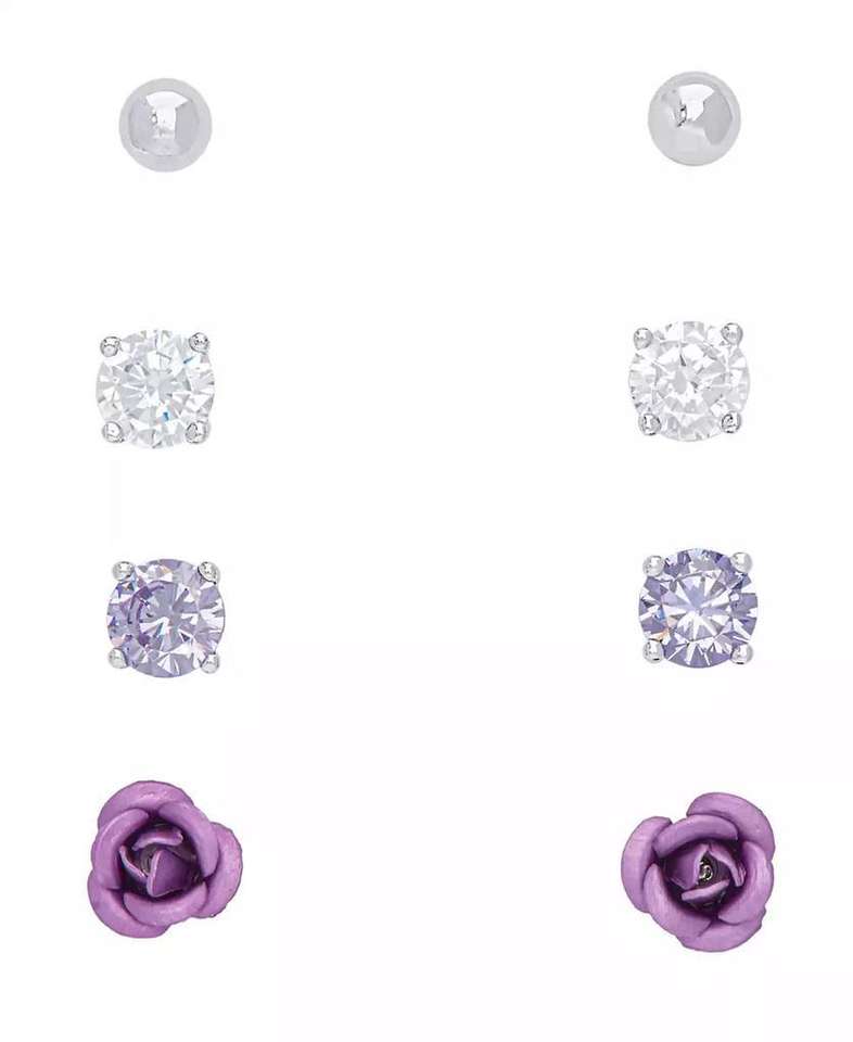 Ball, Clear, Cubic Zirconia and Rose Stud 4-Piece Earrings Set in Fine Silver Plate | Macy's