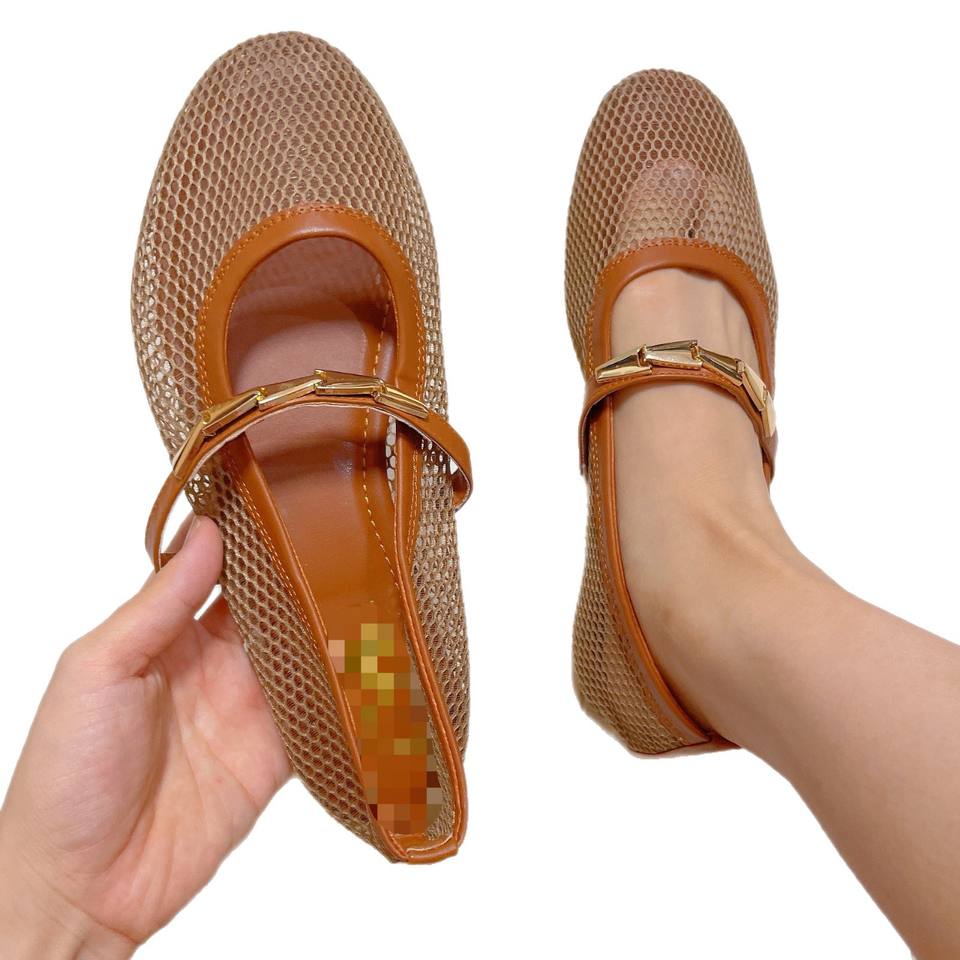 Ballet Flats for Women, Summer and Spring Sandals with Single Buckle and Open Toe Design for Lady Shoes