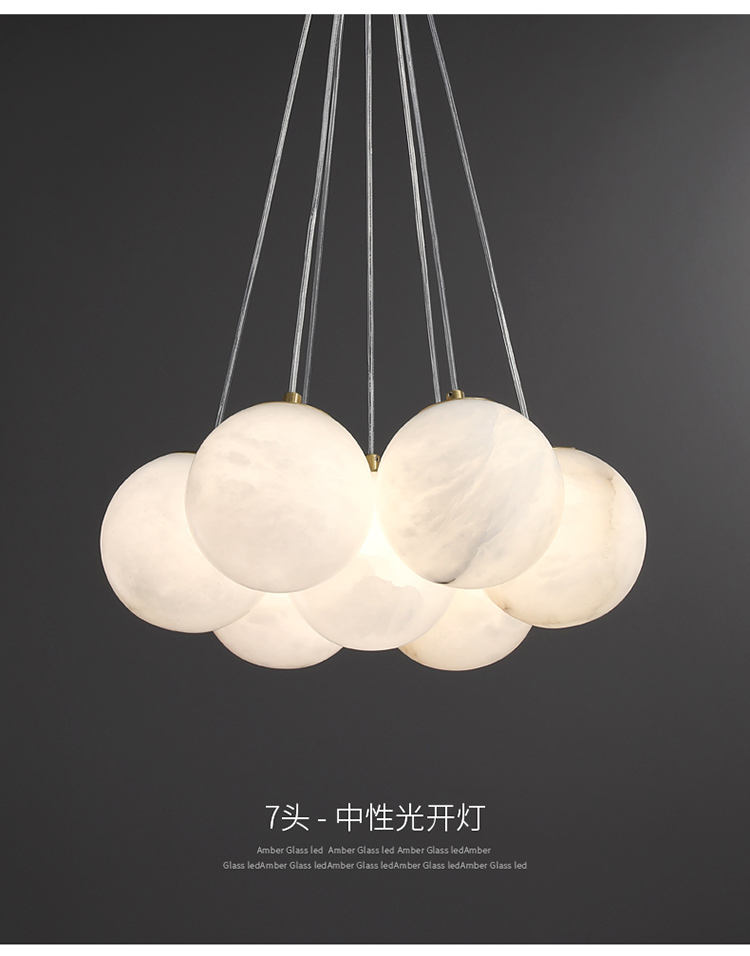 Balloon Chandelier Light Luxury Brass Natural Stone Marble Globe Chimney Living Room Bedroom Nordic Hotel Abalaster Chandelier