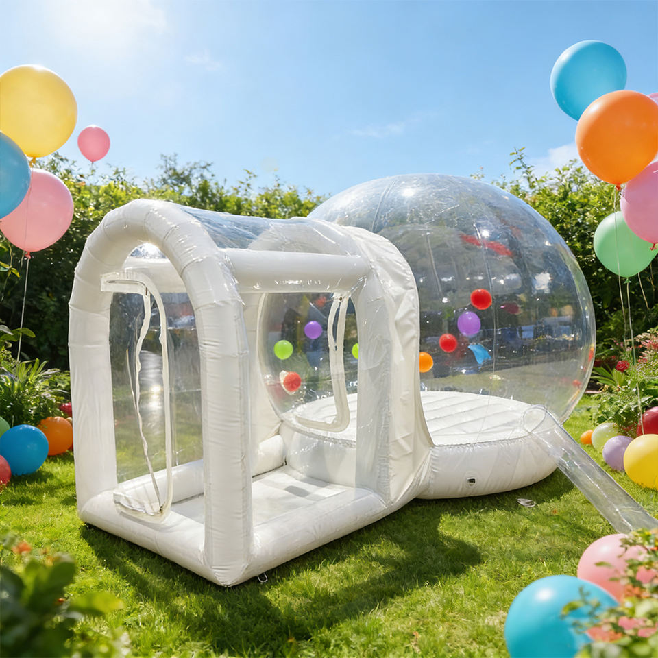Casa Gonfiabile a Bolle con Trampolino e Cupola Trasparente in PVC con Ventilatore per Feste