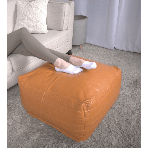 Bambo caramello stile sgabello e Pouf rettangolo in ecopelle
