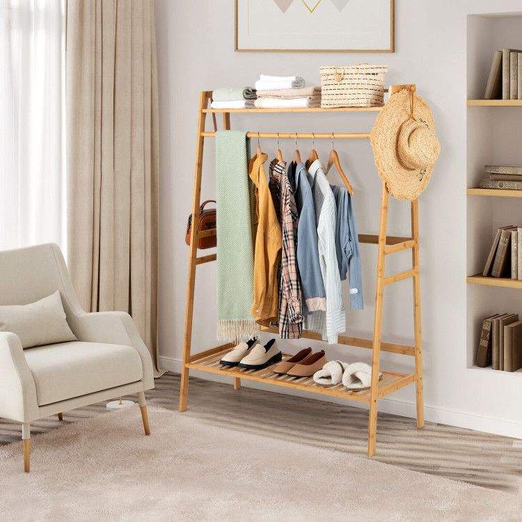 Appendiabiti in bambù con scaffali a parete e portaoggetti