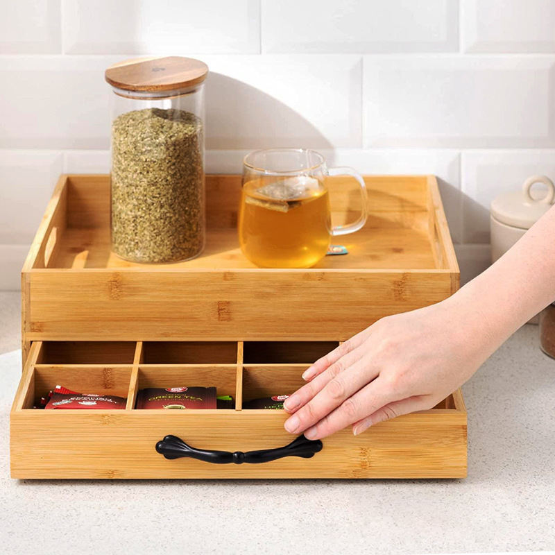 Organizzatore per Stazione Caffè in Bambù per Ufficio, Organizzatore per Stazione Caffè da Bancone, Porta Bustine di Tè e Cialde K-Cup con Cassetto