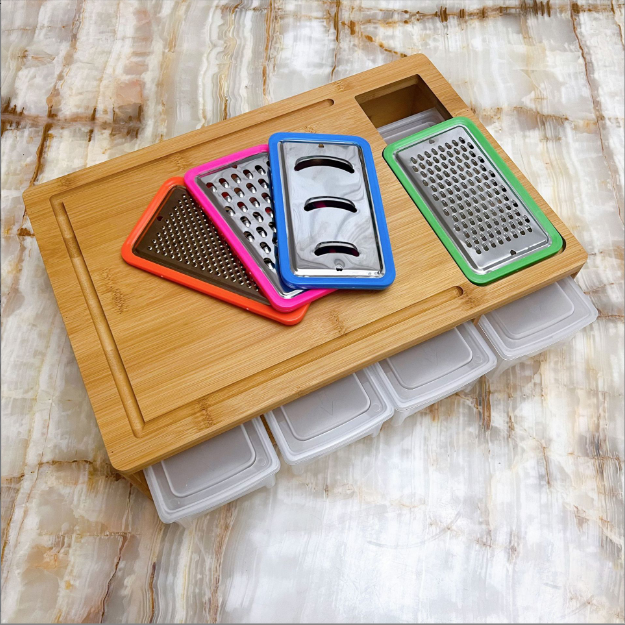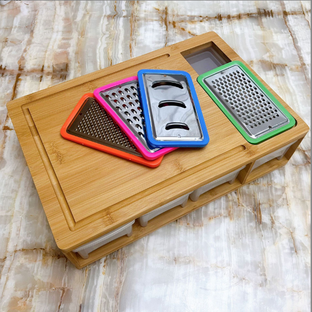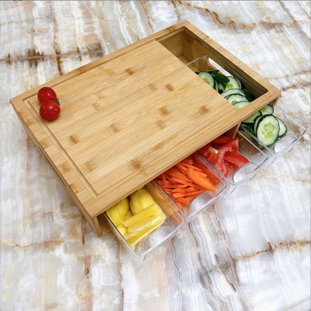 Taglieri in bambù con contenitori estraibili in plastica per set da cucina con custodia portaoggetti