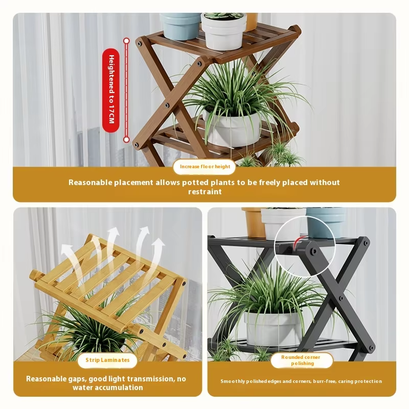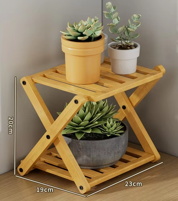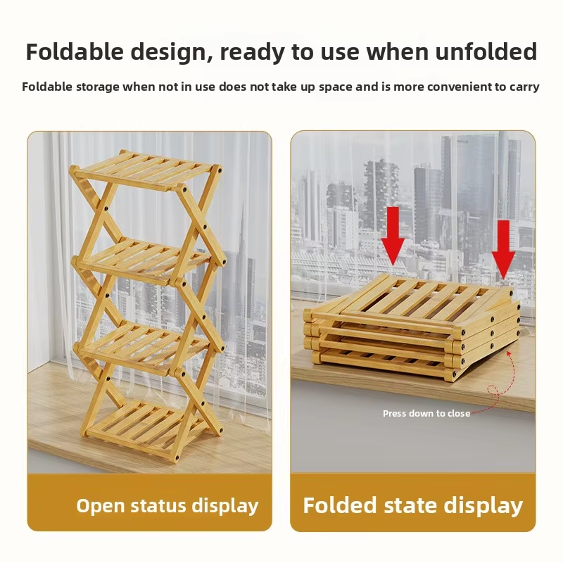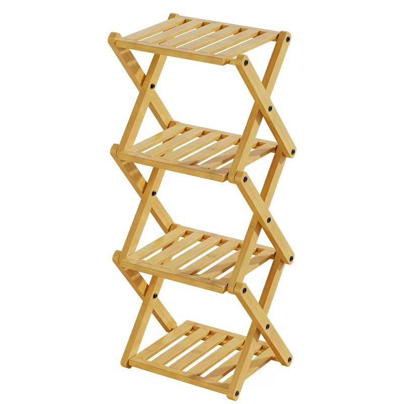 Bamboo Foldable Flowerpot 4-layer Flower Racks Floor-standing Plant Stand for Succulents and Green Plants in Indoor Balcony