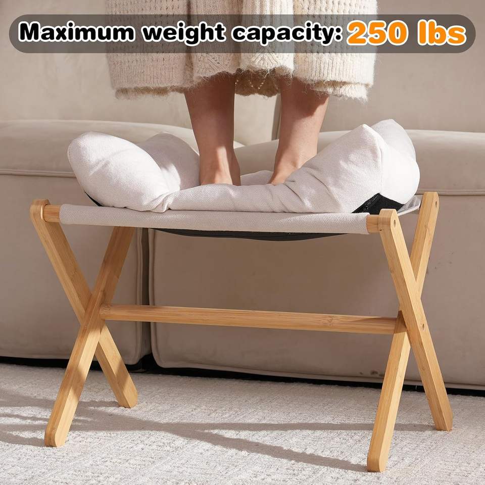 Poggiapiedi Pieghevole in Bambù, Pouf Piccolo con Superficie Liscia e Bordi Arrotondati, Sicuro e Comodo per Riposo Piedi, Casa, Camera da Letto, Balcone