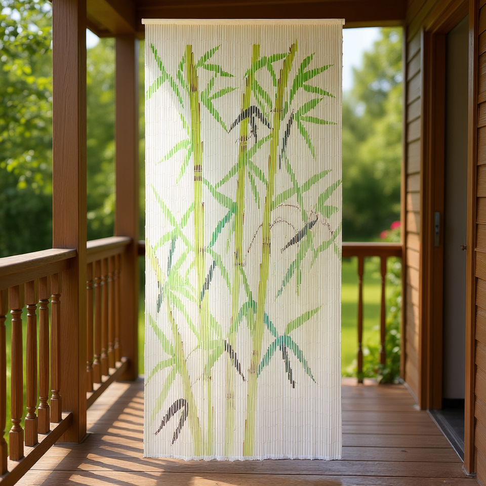 Tenda per Porta in Bambù Contro gli Insetti 35.4x78.7 Pollici Stile Asiatico Facile da Installare