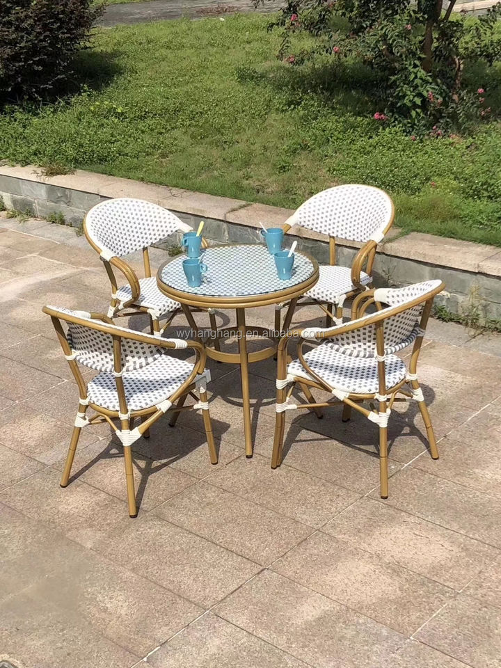 Bamboo Looking Bistro Outdoor Dining Chair Cafe Garden Use for Balcony French Style Aluminum Stackabe Wicker Rattan Set
