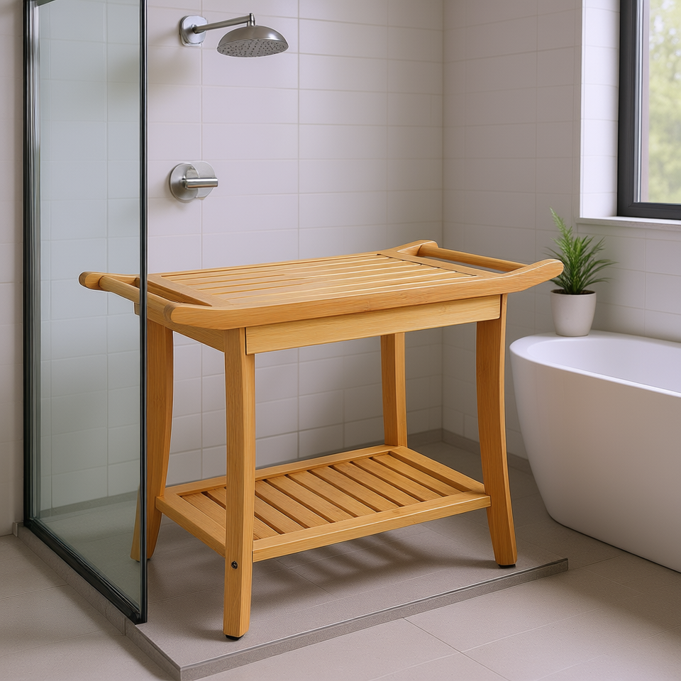Panca da doccia in bambù 24 x 13,8 x 18,9 pollici con ripiano portaoggetti per uso in bagno