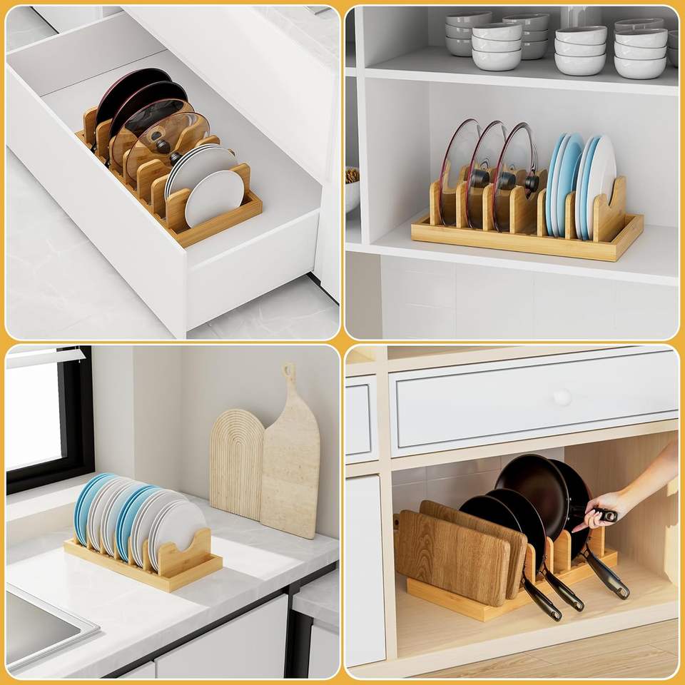 Ripiano in bambù con coperchio in pentola Organizer per cassettiere tagliere teglie riutilizzabili portabottiglie