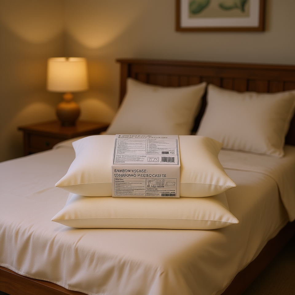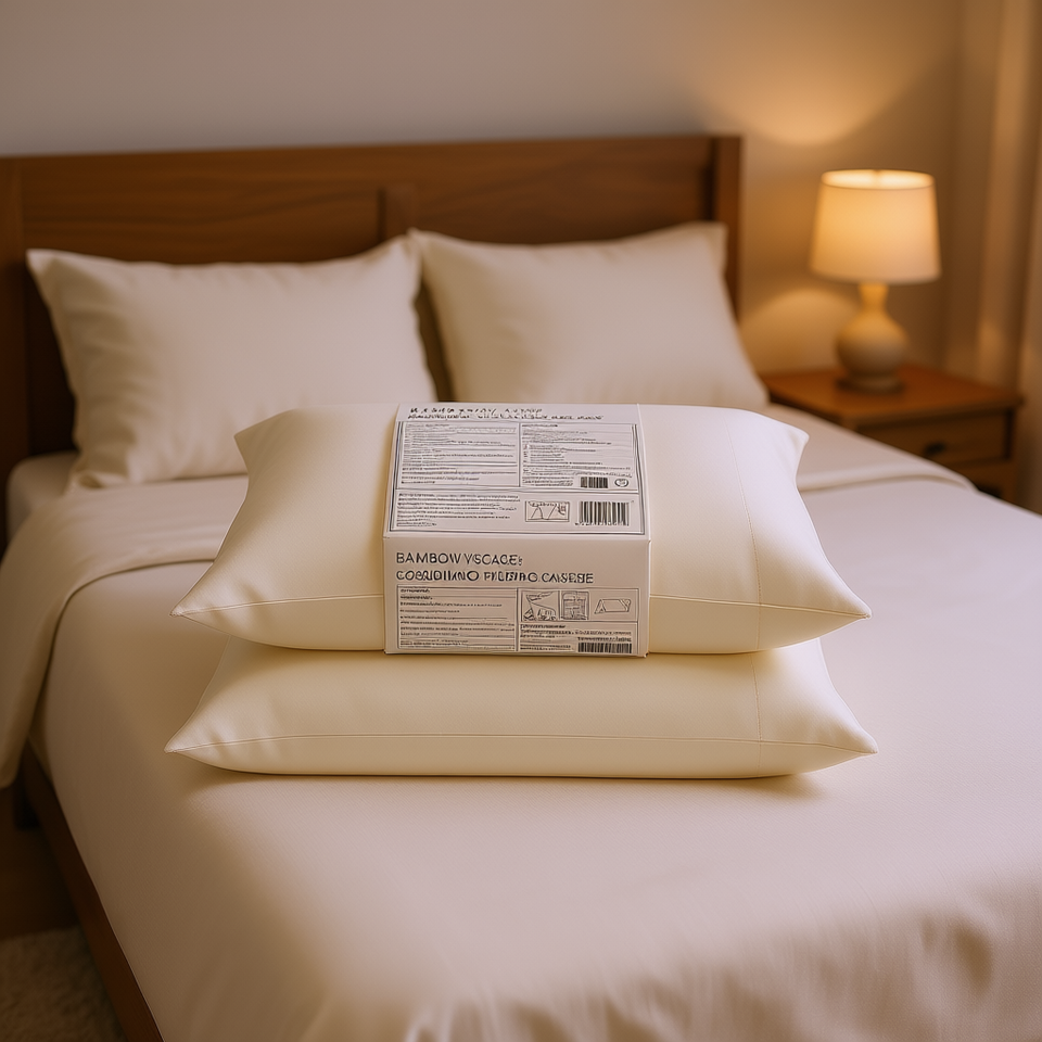 Set di Federe in Viscosa di Bambù, Misura Queen, 2 Pezzi, Colore Crema, Certificato Oeko-Tex, Biancheria da Letto