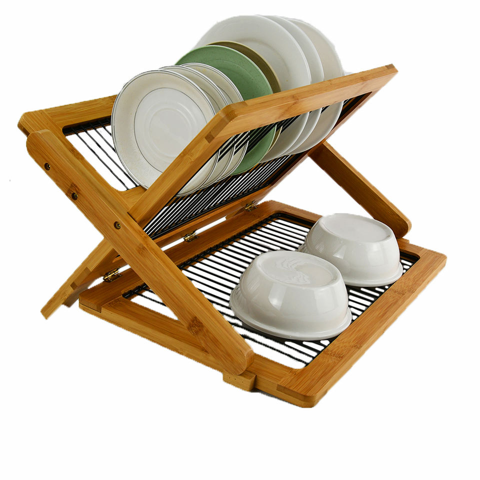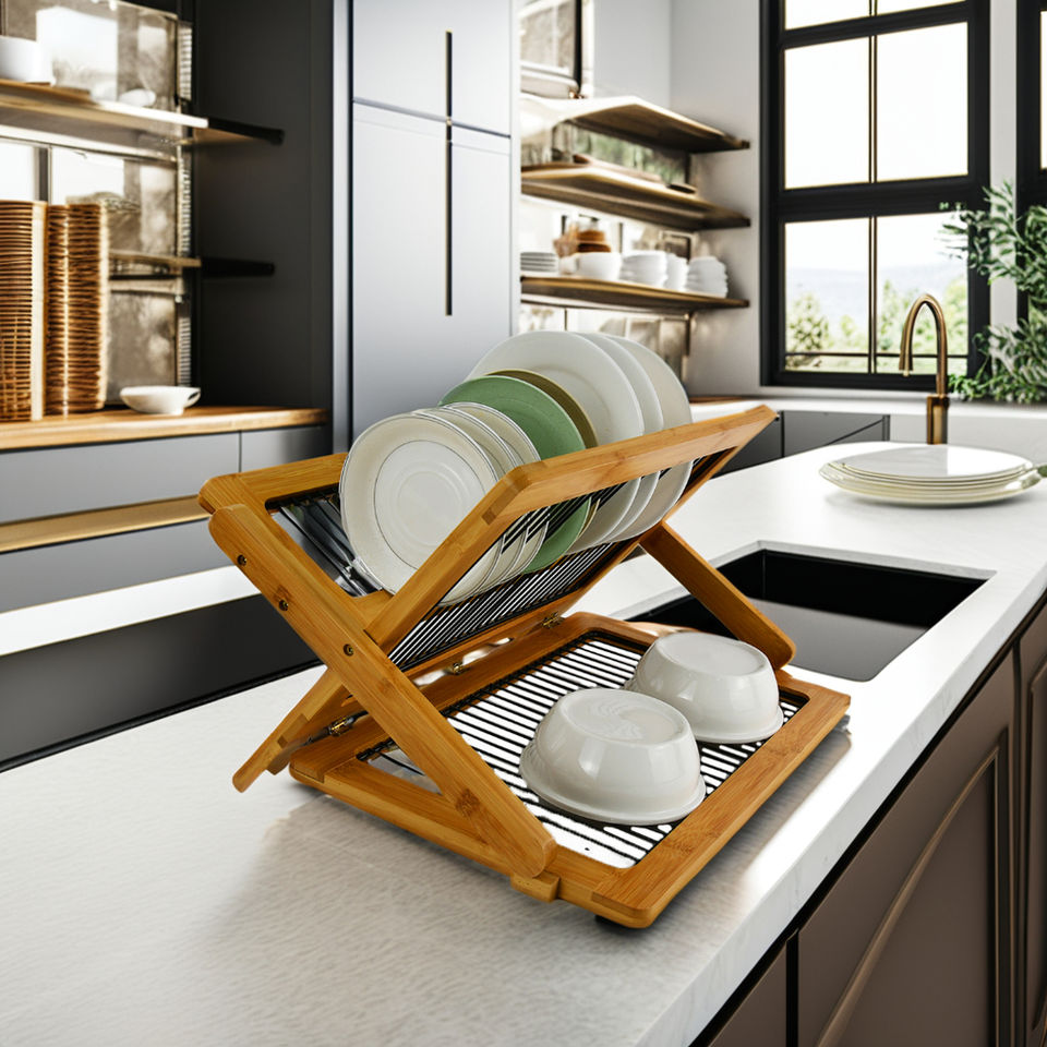 Bamboo Wooden Dish Drying Rack Utensil Holder,Dish Rack for Kitchen Counter Over Sink Small Adjustable