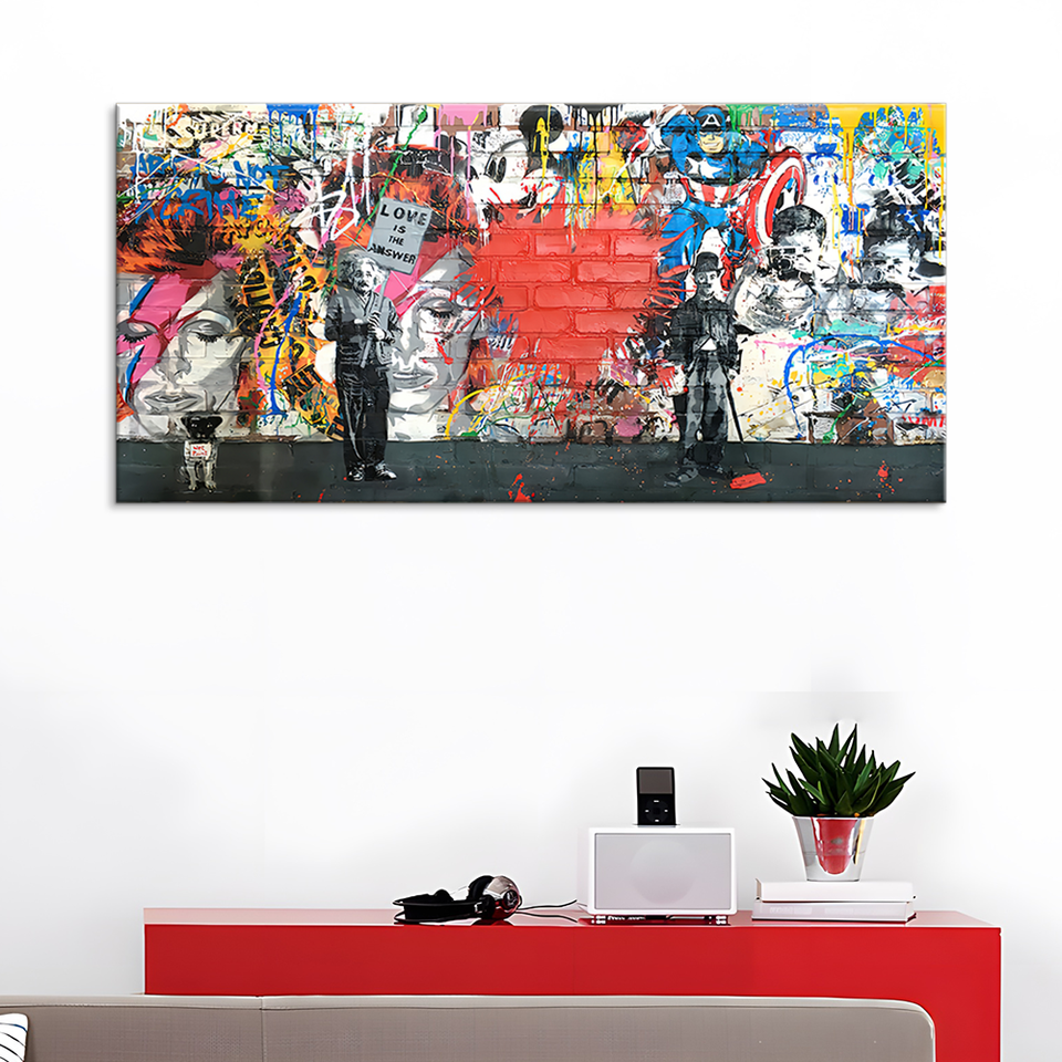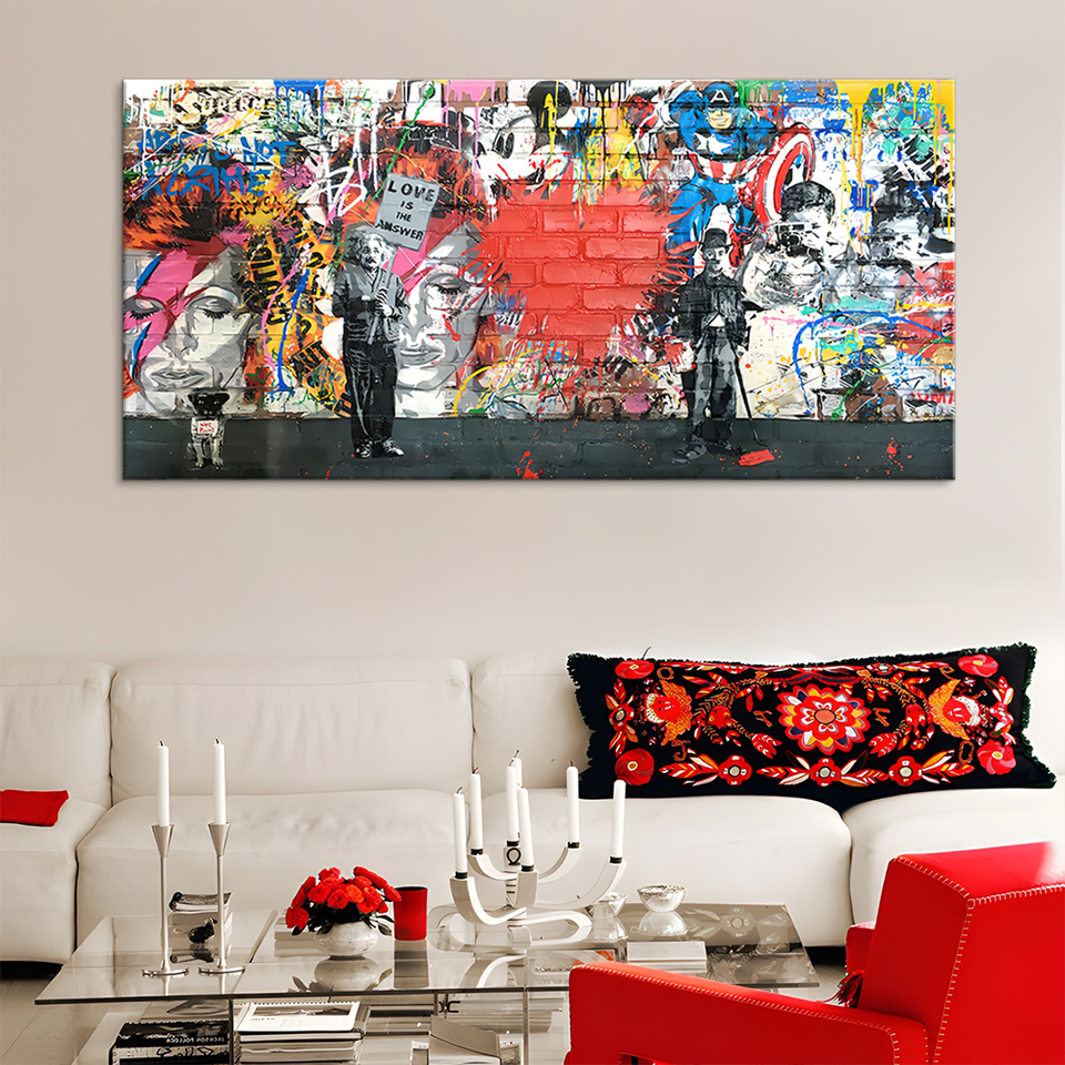 Banksy Graffiti Street Art Paintings Pop Art Famous Character Brick Wall Background Mural Canvas Prints Wall Art Home
