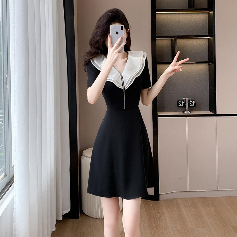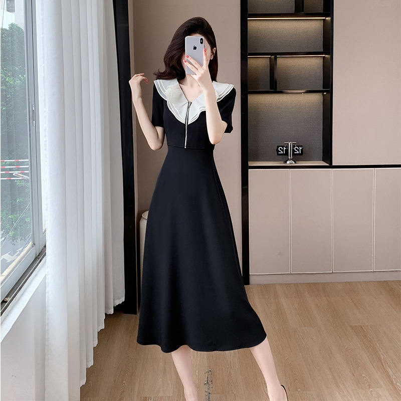 Baogumi da donna con collo a volant in stile francese che stringe vita estate dimagrante abito lungo da donna 9229