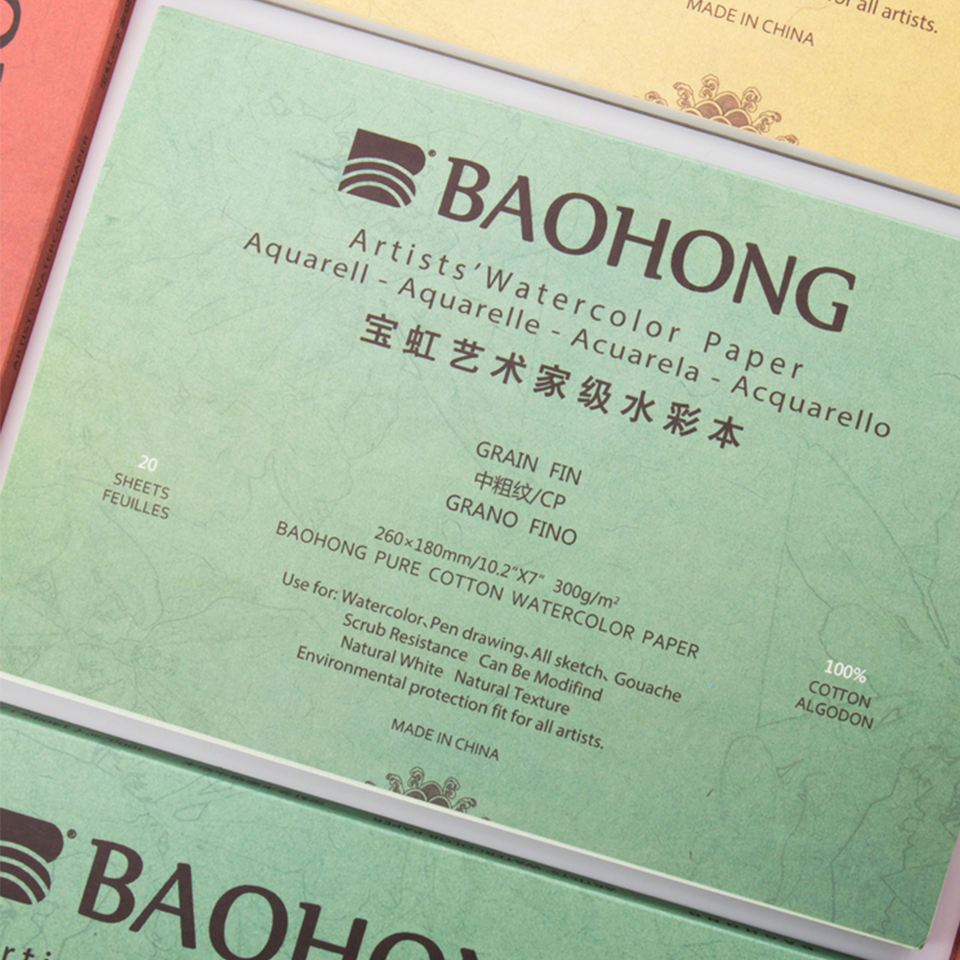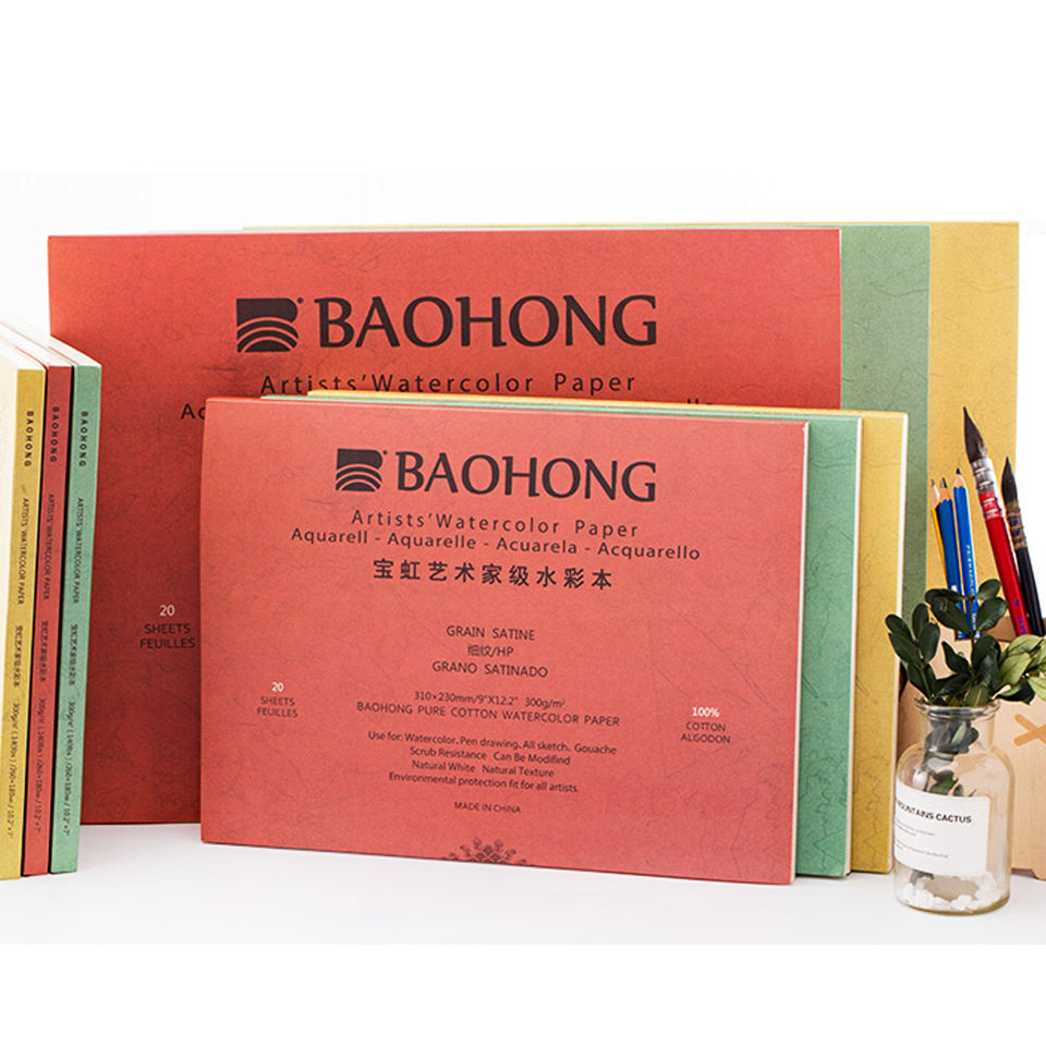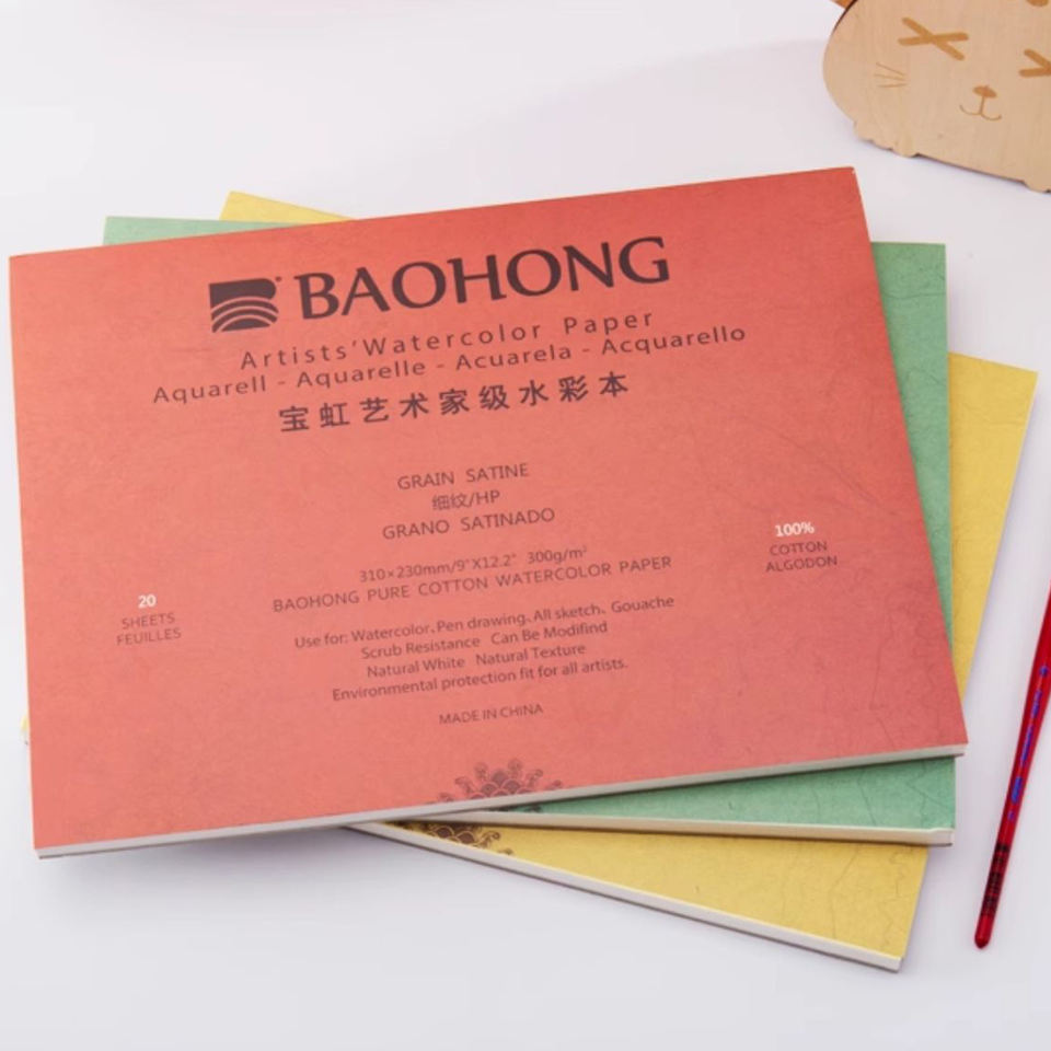 Baohong Artist Grade 320x230mm 100% Cotton 300gsm Hot Press Cold Press Drawing Pad for Watercolor Acrylic Gouache Painting