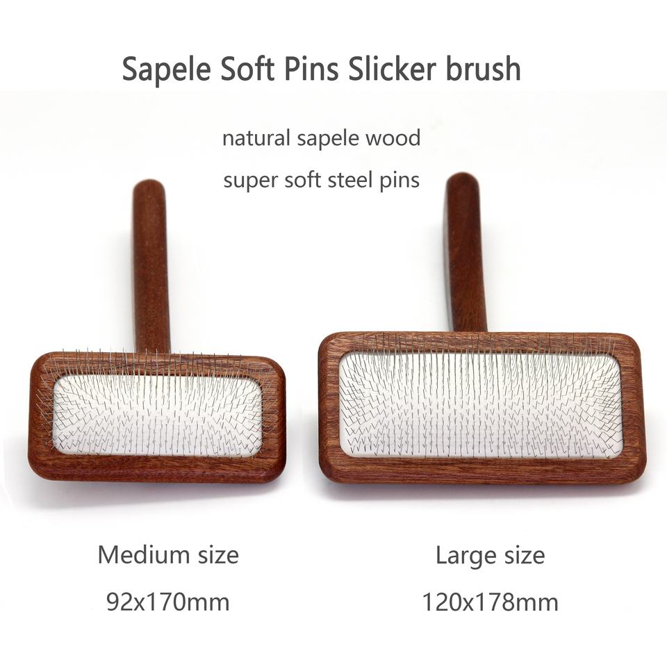 Baoli OEM Berus Anjing Pet Grooming Brush Wooden Handle Ultra Soft Pins Slicker Brush Dog Hair Combing for Fluffy Pet Brush