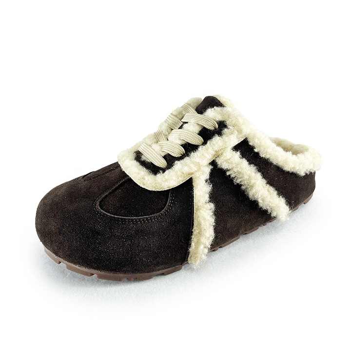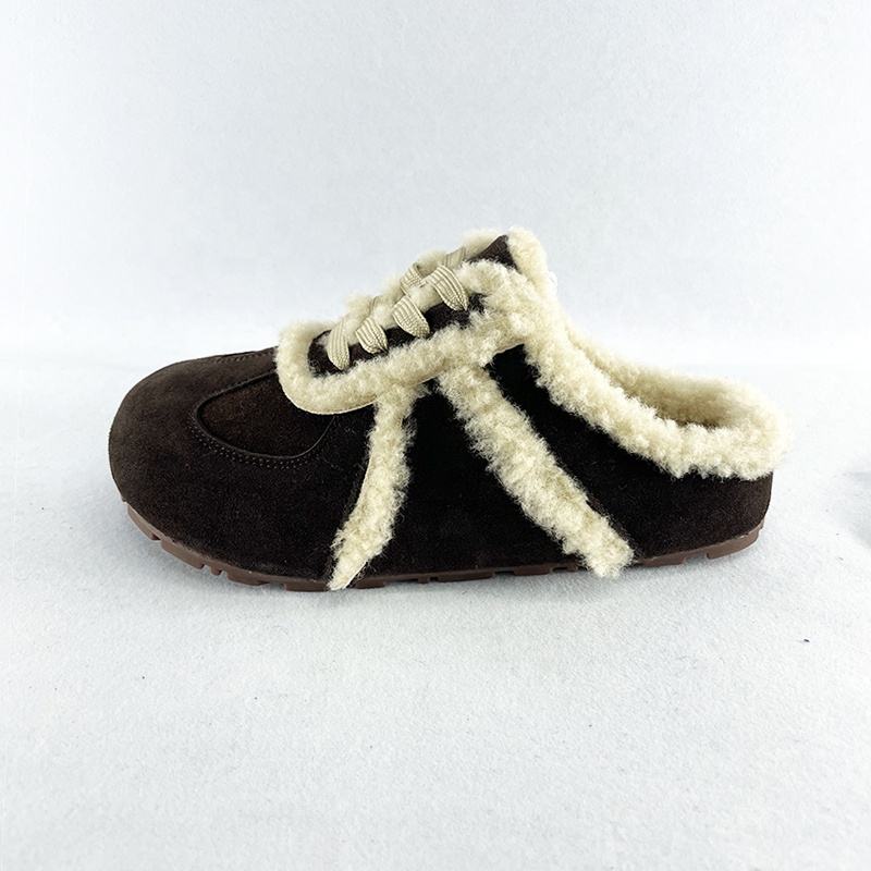 Baotou Thick Soled Hairy Half slippers for Women 2025 New Velcro Haken Shoes Slipper Shoes