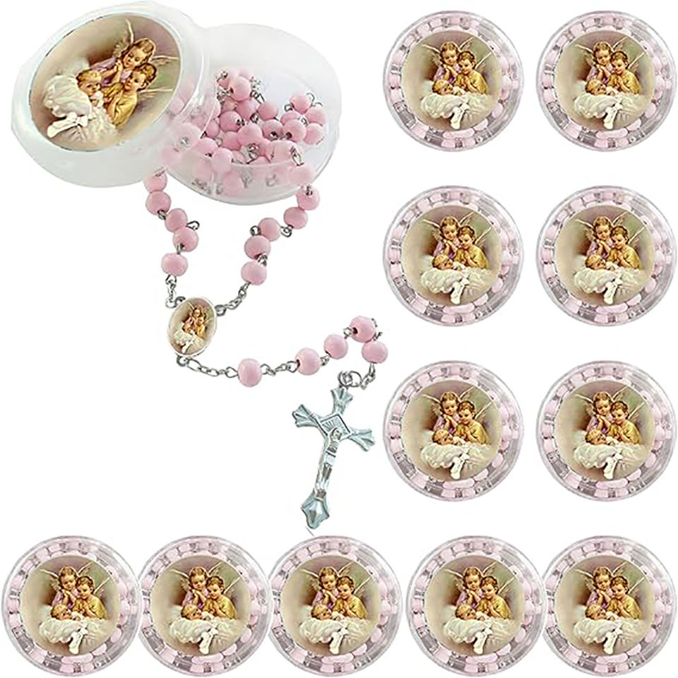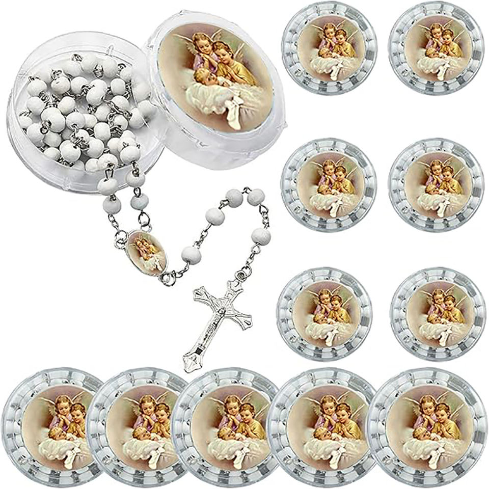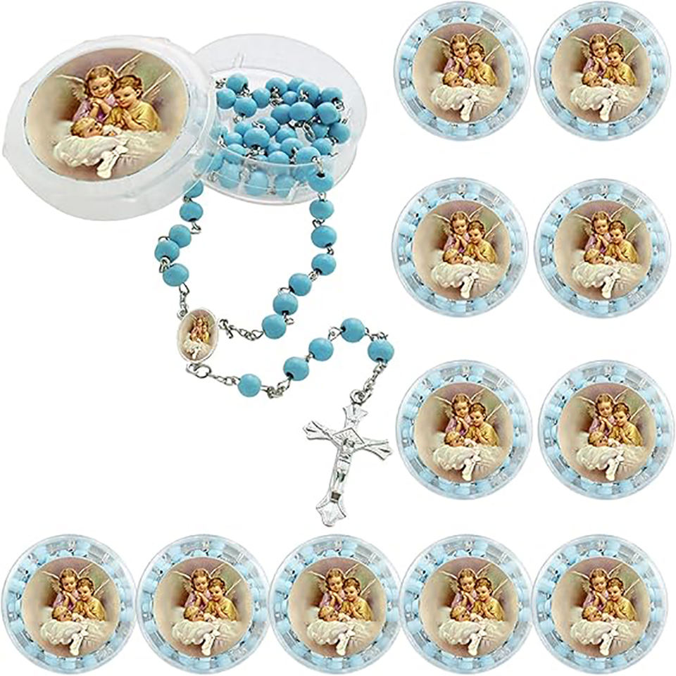 Bomboniera Battesimo 12 Pezzi Rosari Profumati a Collana con Angelo per Invitati Ricordo per Bambino e Bambina