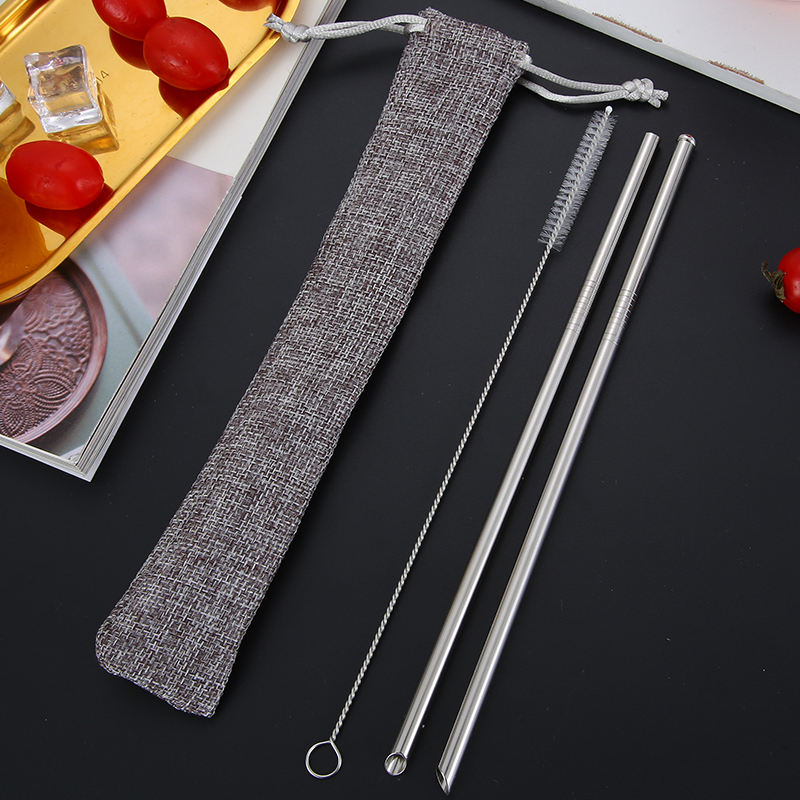 Accessori per Bar cannuccia conica in acciaio inossidabile con custodia in lino e spazzola per la pulizia