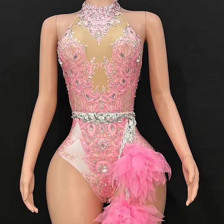 Bar DS Korean Women's Club Nightclub Pink Diamond Interactive Kpop Costume Set X003 Sexy Hot Dance Conjoined Gogo Cats