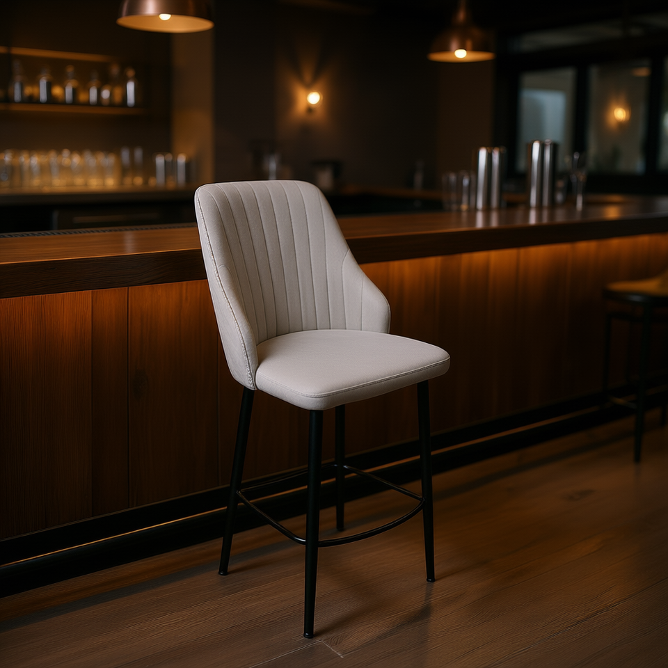 Sgabello da Bar HLR-2 con Telaio in Metallo Bianco, Design Moderno, Arredamento per Bar, Uso Commerciale Stabile