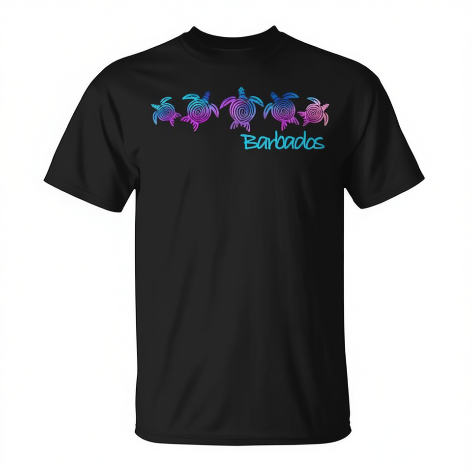 T-shirt Barbados Beach Tribal Turtle nera per adulti unisex