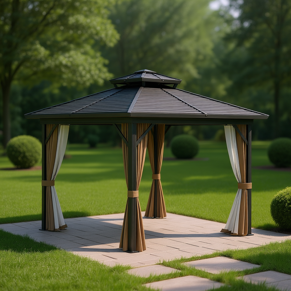 Pergola Quadrata da Esterno in Alluminio Nero Verniciato a Polvere, Riparo per Barbecue, Gazebo, Padiglione
