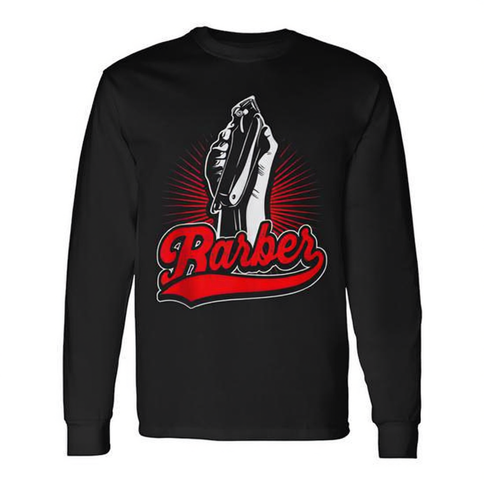 T-shirt a maniche lunghe da uomo per amanti del taglio dei capelli Barber Pole, abbigliamento casual